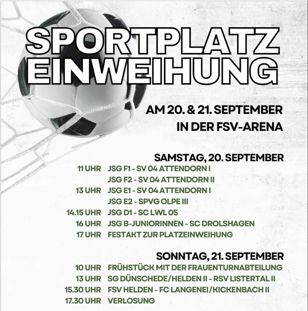 Am 20. und 21. September wollen wir mit Euch den neuen Platz mit einem bunten Rahmenprogramm, kühlen Getränken und dem klassischen Sportfest-Essen einweihen. Auch die beliebte Verlosung ist natürlich wieder Teil des Programms und rundet das Wochenende am Sonntagabend ab.
